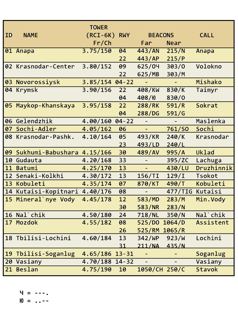 Главная > Файлы пользователей > Данные аэродромов для планшета Миг - 15 бис (RWY info for kneeboard Mig - 15 bis)