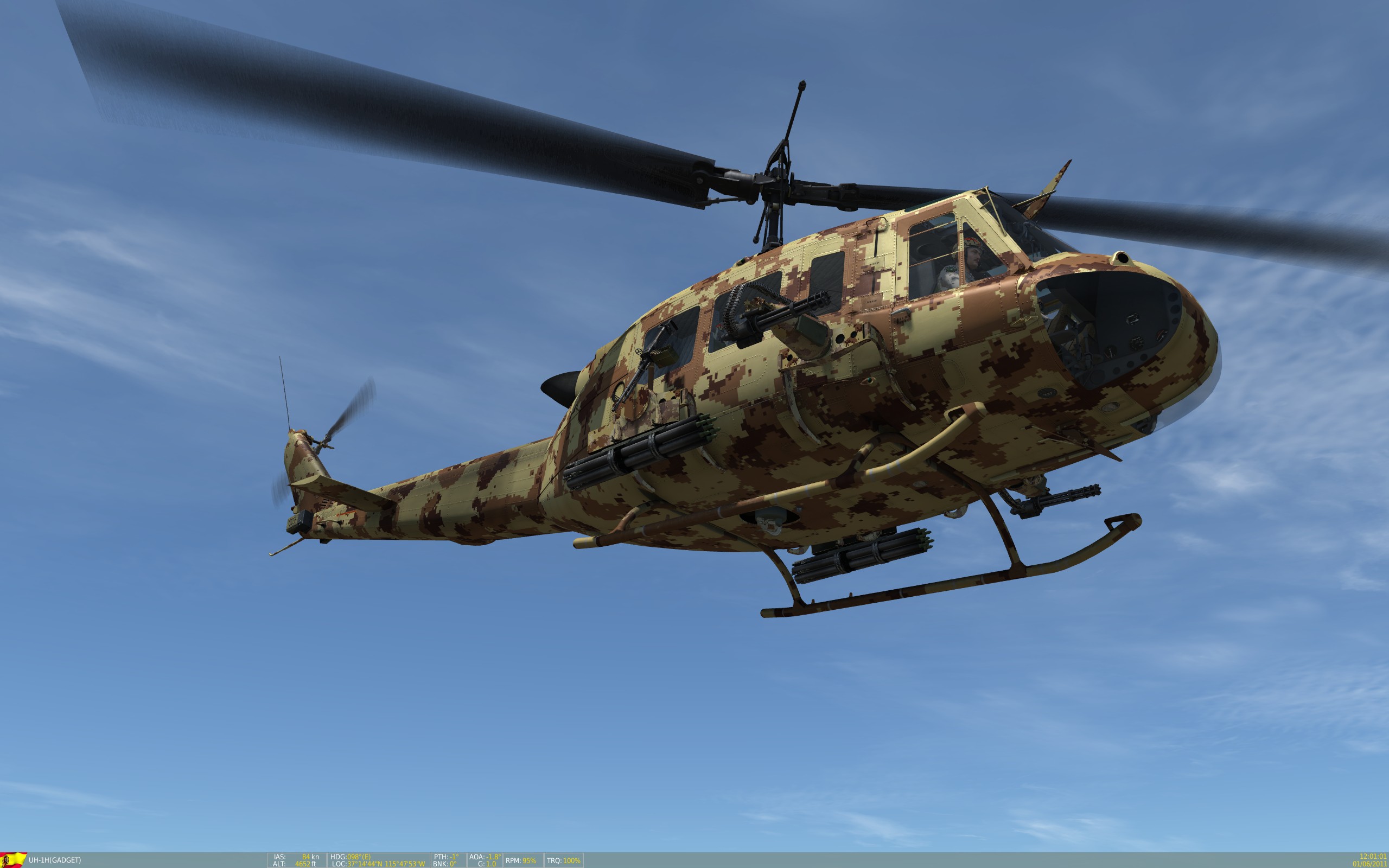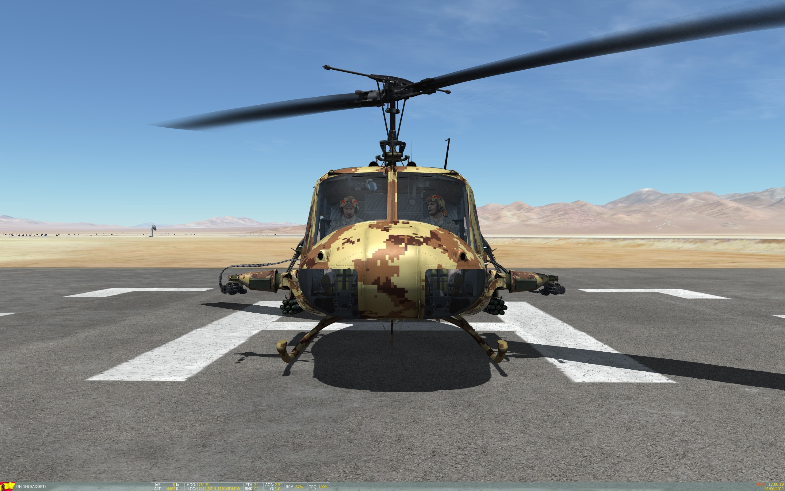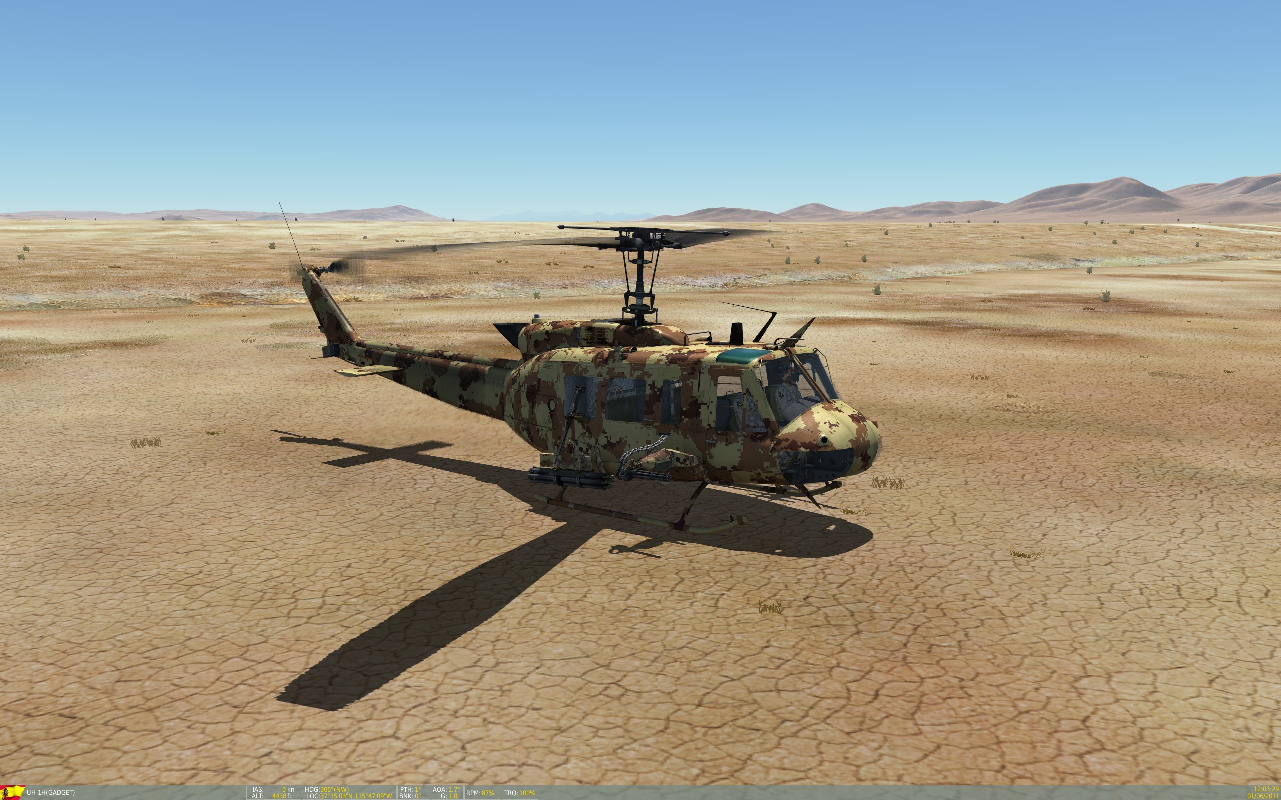 This a skin featuring a realistic CADPAT Arid Regions Camo (https://en.wikipedia.org/wiki/CADPAT), appied to a UH-1H helicopter for desert enviroment. specially useful on the Nevada map.