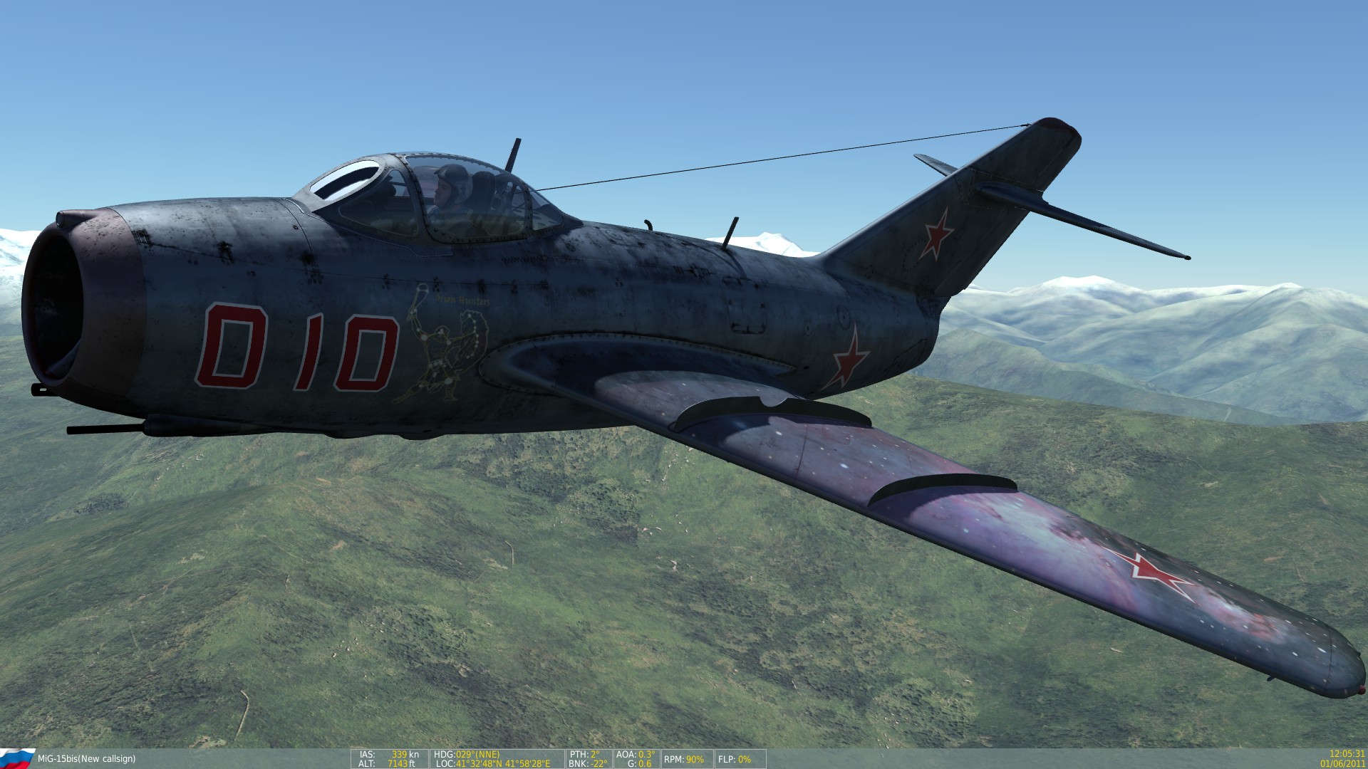 MiG-15bis paint scheme. Orion Nebulae on the wings with hunter insignia on the nose. Special black paint job. Fictional Squadron. Works with USSR Countries.