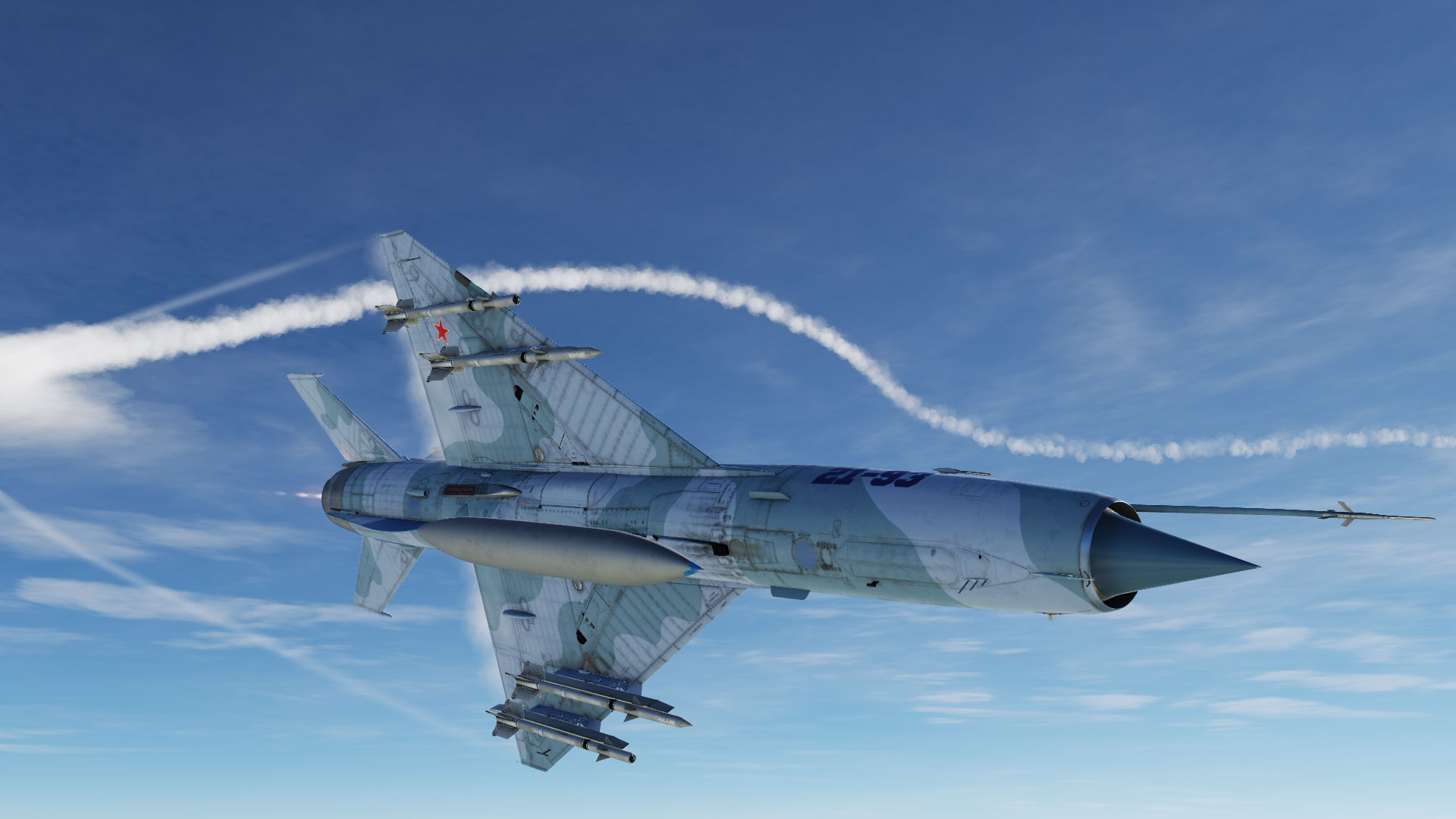 Suite à une mise à jour des fichiers de textures dans le simulateur pour cet appareil, mes textures ne fonctionnaient plus. Je vous propose de nouveau cette version repeinte du Mig 21 dans la version 21-93.