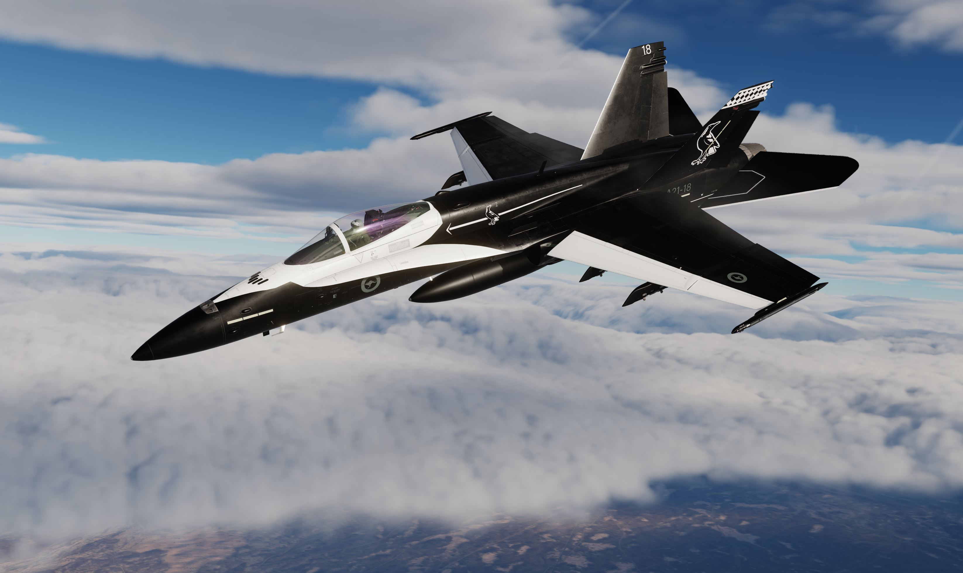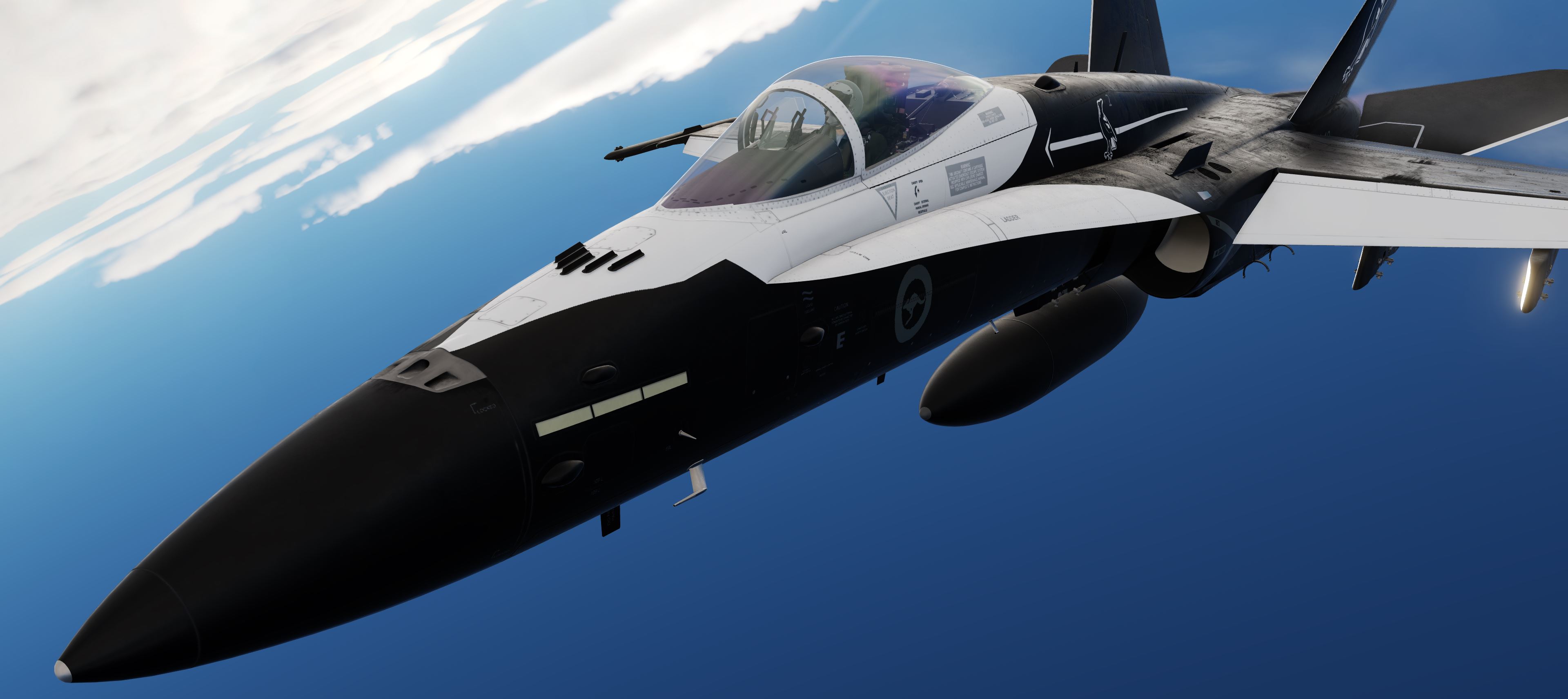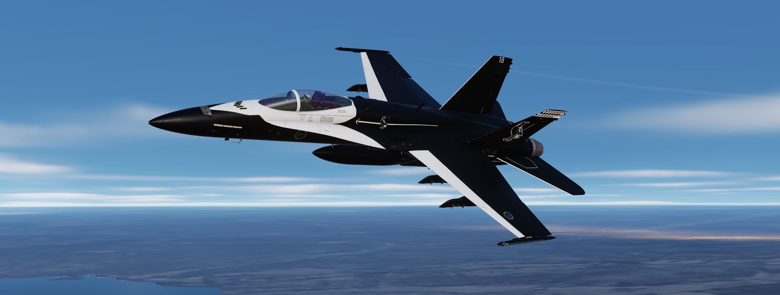 Australian No. 75 Squadron F/A-18A Hornet A21-18. Black and white commemorative livery ahead of the squadron's transition to the F-35A Lightning II in 2022