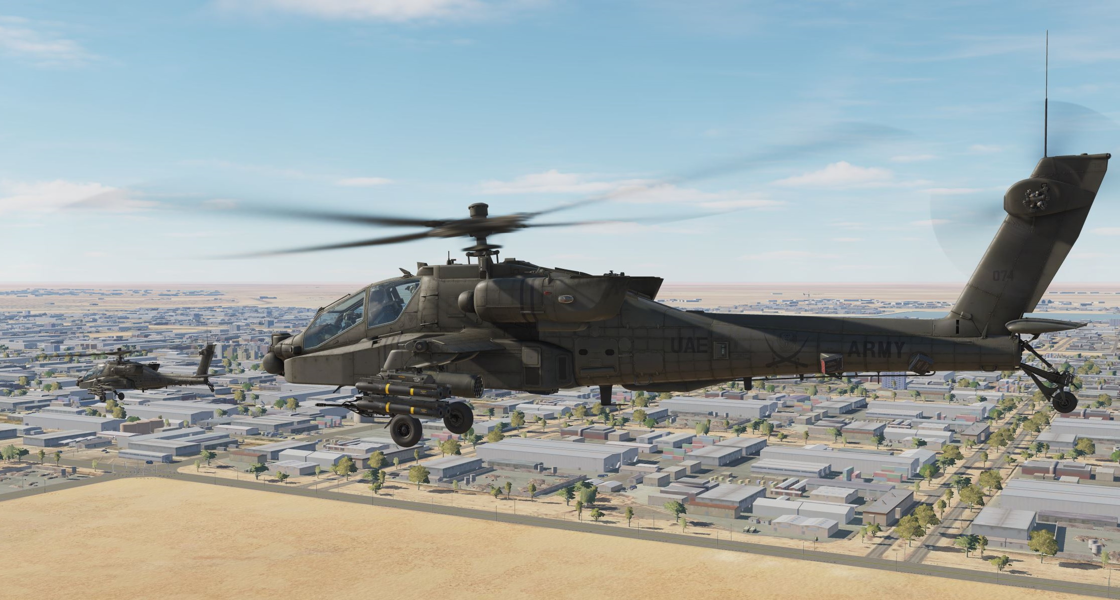 A re-creation of the livery for the AH-64 Apache operated by the United Arab Emirates Armed Forces in a realistic Olive Drab.