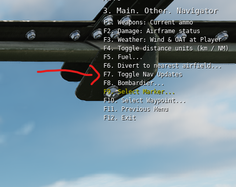 2) In the aircraft, open F10 > Navigator > Select Waypoint.