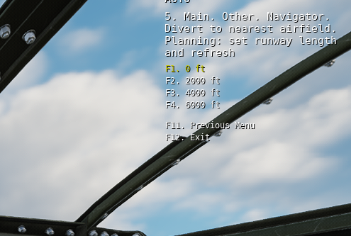 - Divert to nearest airfield > Planning, Sel ect Airfield, Refresh divert list, Request Signal Flare at Divert Airfield