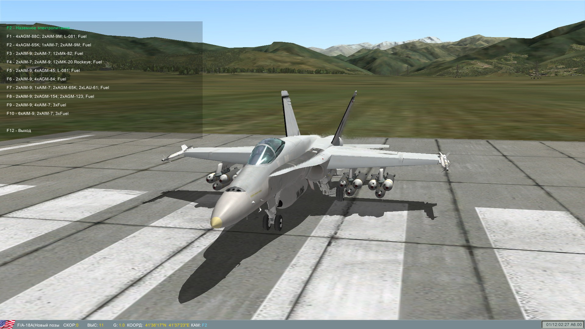 - Содержит MISSILE MOD 3.0 (ставится отдельно) для пуска "нелетабельных" ракет и для зарядки самолетов без пушек (Ту-160, F-117, B-1B, B-52, Миг-25: в меню НОП отметка MISSILE MOD)