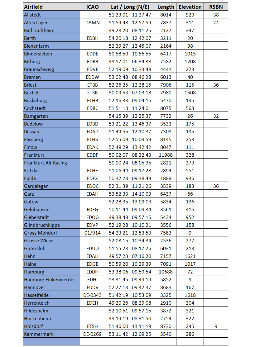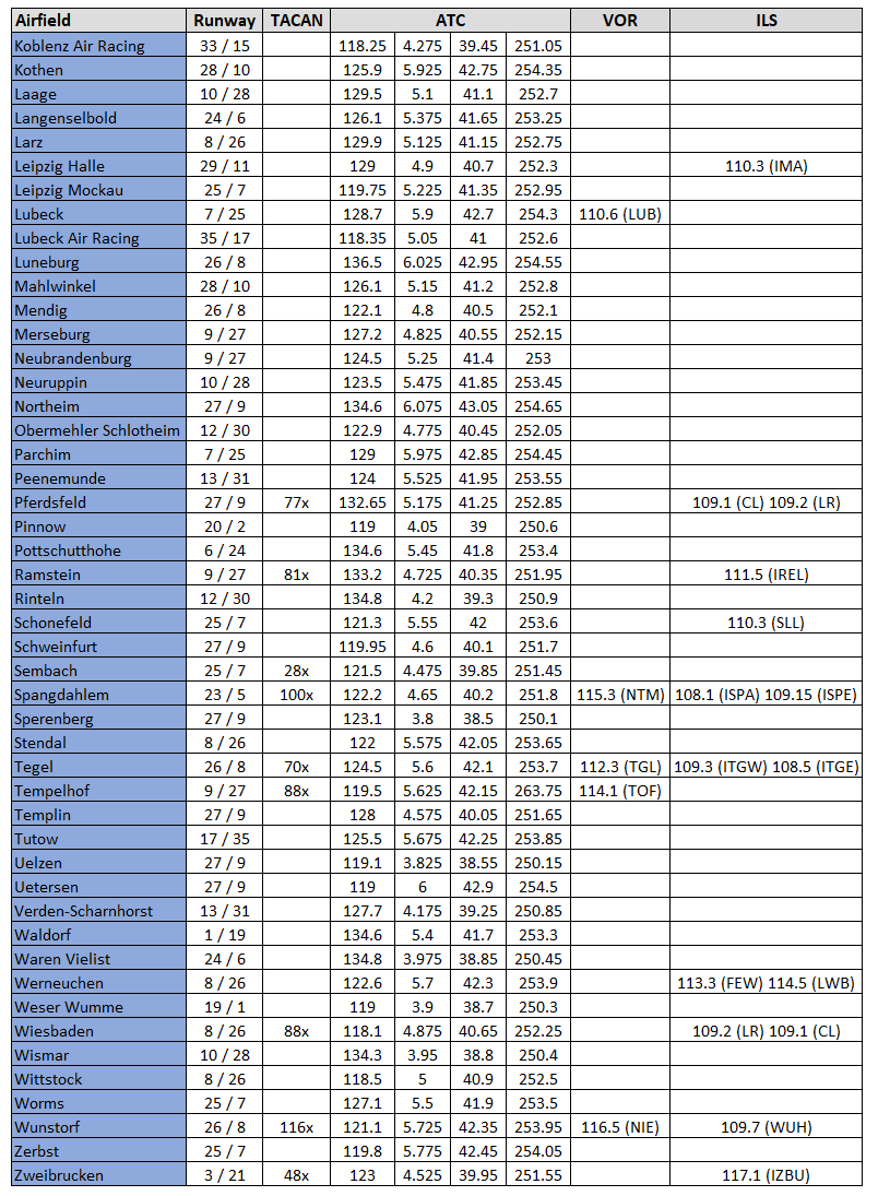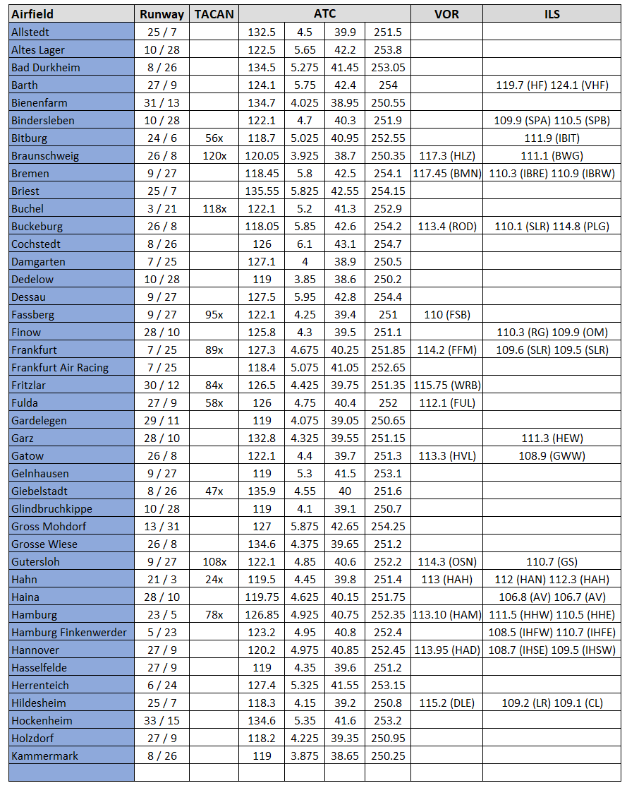 These are the first version of a set of KBs covering the airfield frequencies on the cold war Germany map.