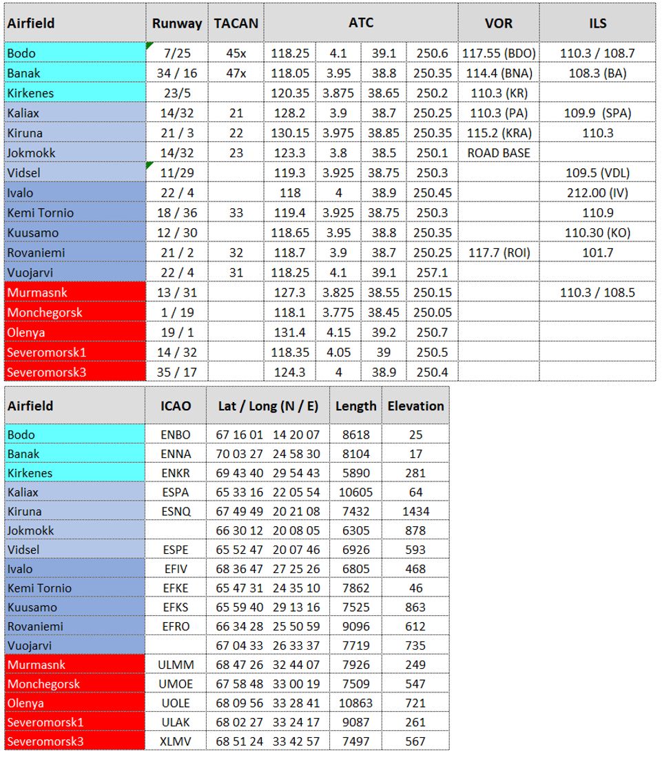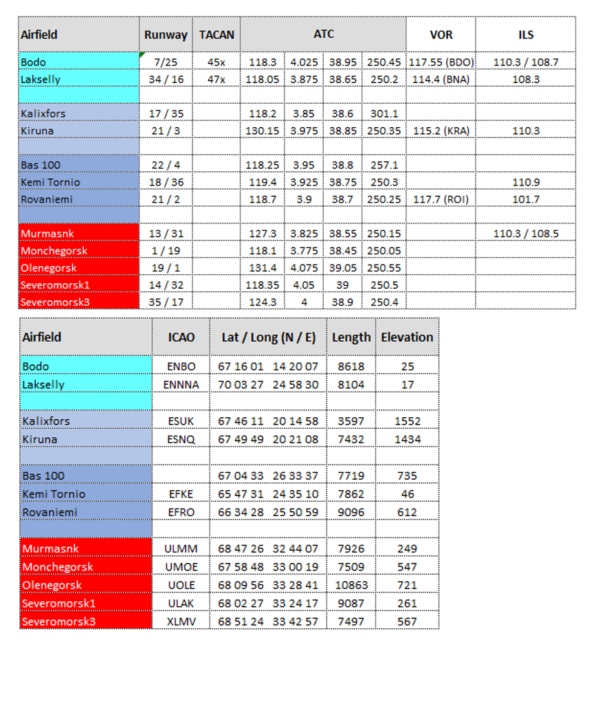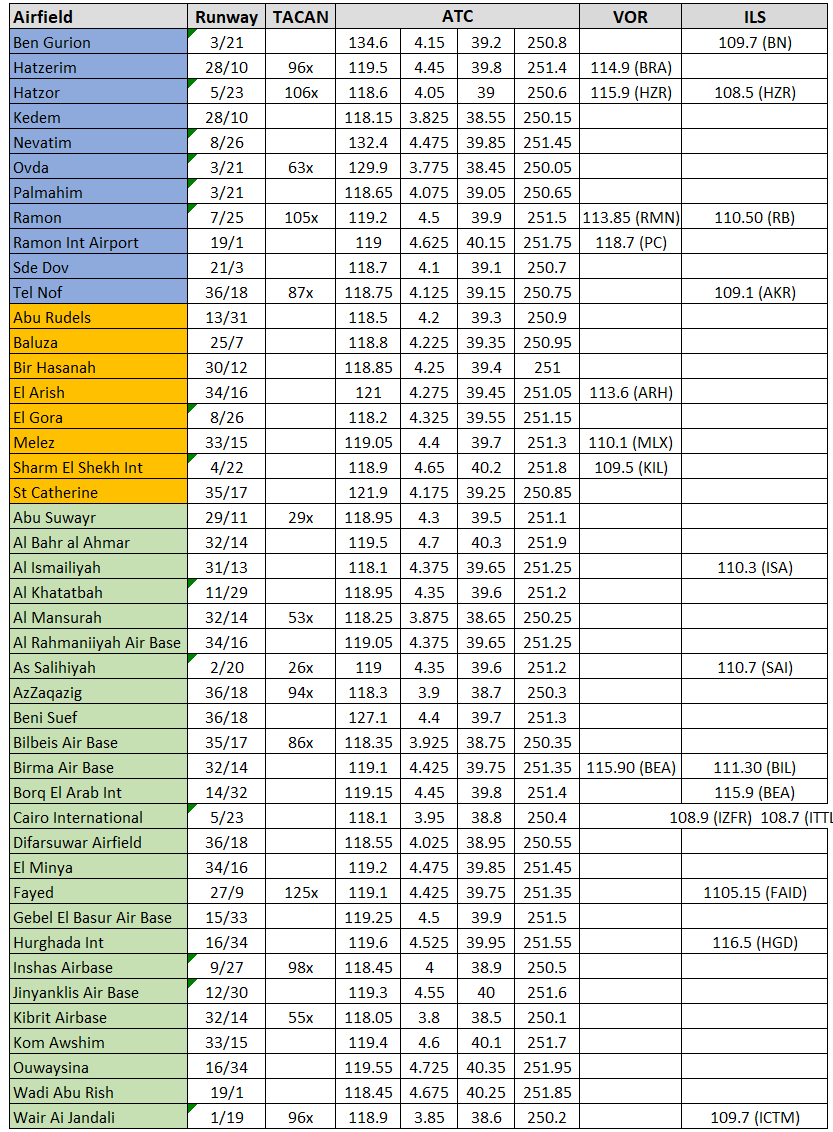 New set of kneeboards summarising the airfields for the updated map of Sinai