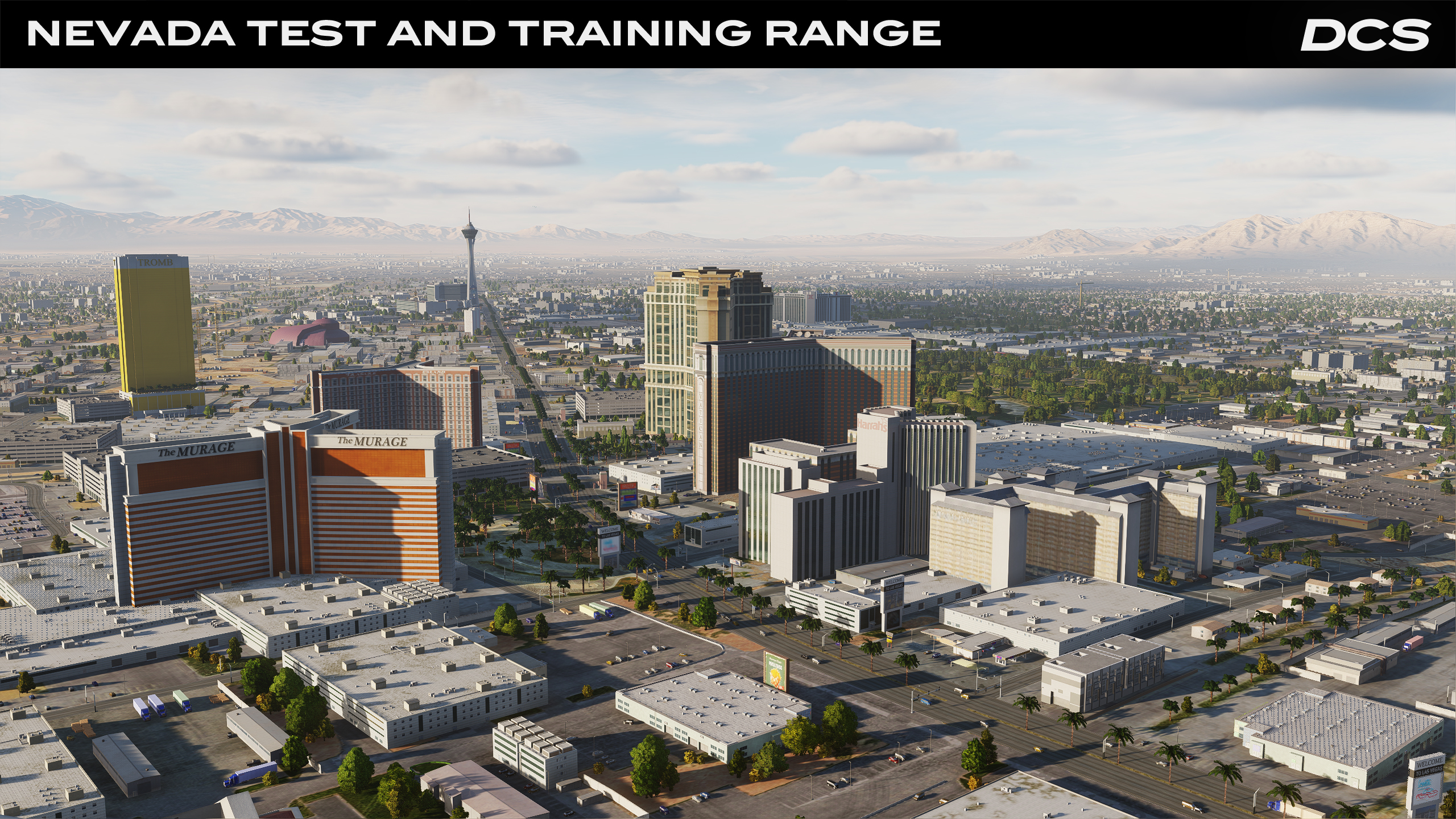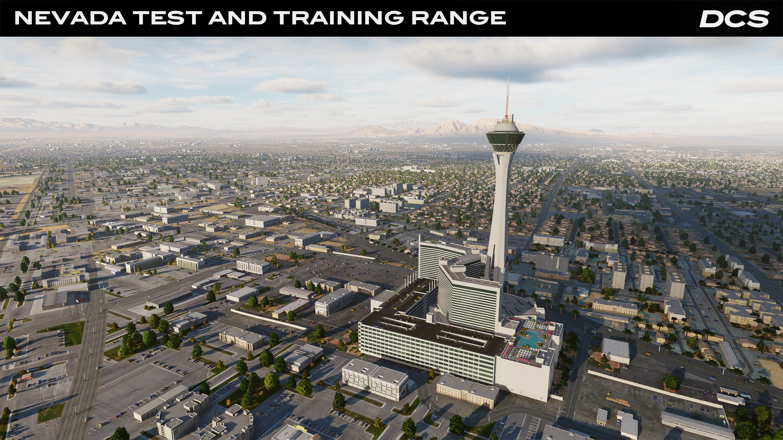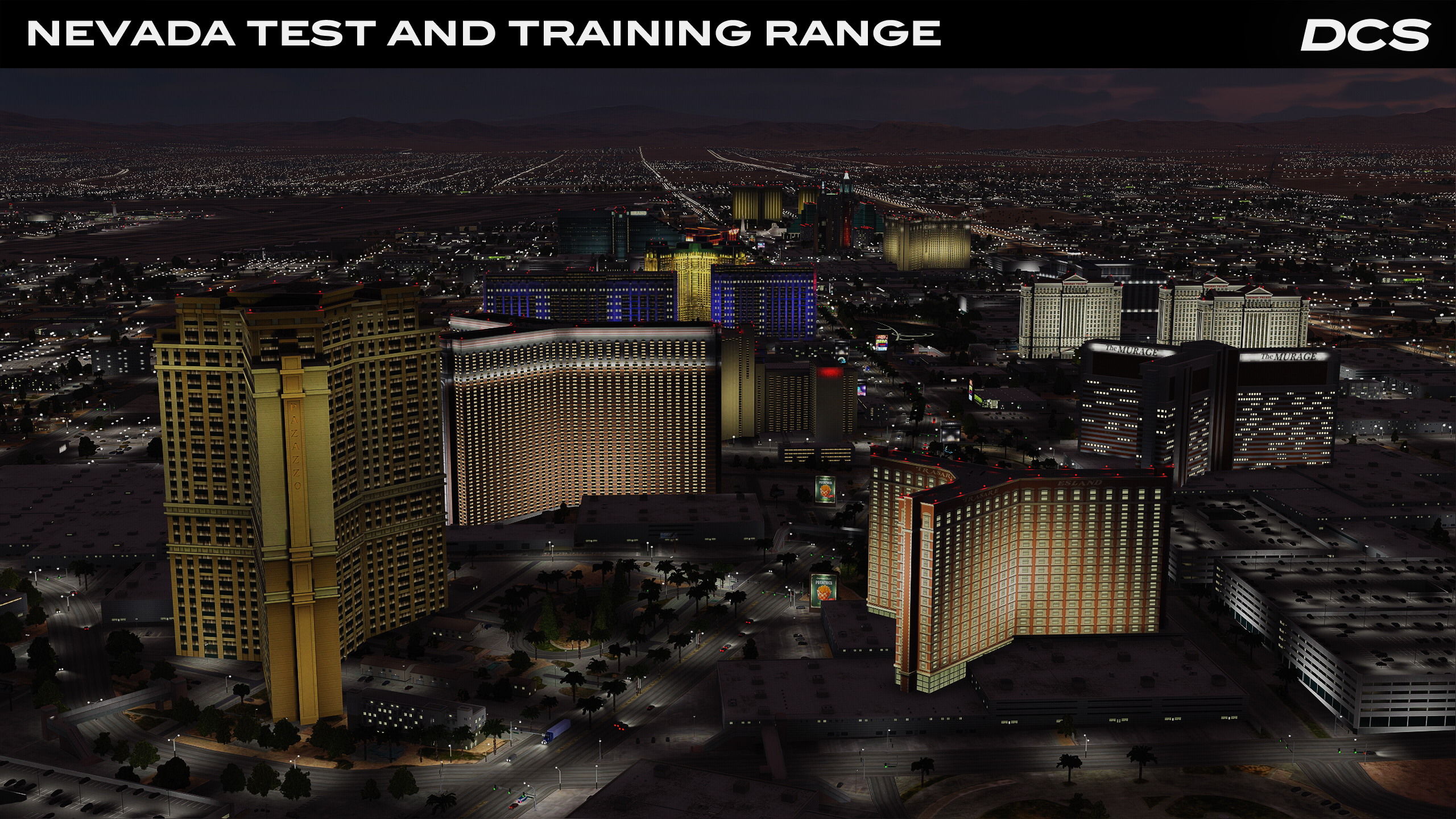 Учебно-испытательный полигон Невады (NTTR) имеет самую большую территорию в мире доступную для проведения военных учений в мирное время. Полигон NTTR включает в себя системы, имитирующие ПВО потенциального противника, макеты аэродромов и несколько мишенных полей. В свое время, территория NTTR использовалась как место проведения ядерных испытаний. Сегодня же здесь проводятся всевозможные военные учения, в том числе и одно из самых известных - Red Flag, к участию в котором привлекаются пилоты из множества стран со всего мира. Карта NTTR для DCS World 2 включает в себя авиабазы Nellis и Creech, а также пользующуюся дурной славой авиабазу Groom Lake (более известную как “Зона 51”). Кроме того, в состав карты входит город Las Vegas, международный аэропорт McCarran и уникальная плотина Гувера.