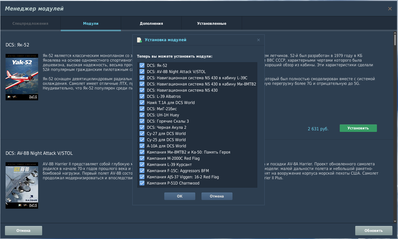 DCS World автоматически обнаружит новую покупку и Вам будет предложено сразу начать установку.